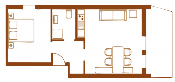 • 2-Raum-Appartement (ca. 46 qm) für 2 Personen